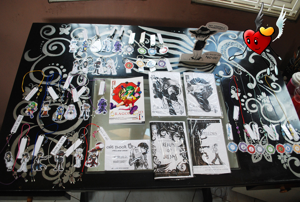 Chibiheart and I are already making the final preparations on what we will be selling this coming saturday. There are the old issues of DRAGON KID Issue 2-3 (4-5 will be on sale on the next con.), then there is REALM OF DREAMS Issue 2 (This will be the last print as I will be selling Issue 3 in the next con), ODDFELLOWS and ONE FLOOR UP. Aside from that I'll be selling KEYCHAINS and BEADED BOOKMARKS and I will be doing CHIBI DRAWING COMMISSIONS.